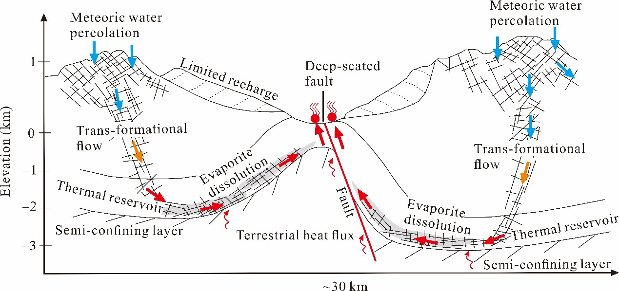 近日,tyc122cc太阳成集团杨平恒副教授课题组在国际水文学TOP期刊Journal of Hydrology(IF:4.405)上在线发表了题为Hydrogeochemistry and geothermometry of the carbonate-evaporite aquifers controlled by deep-seated faults using major ions and environmental isotopes(断裂型碳酸盐岩-硫酸盐岩含水层水文地球化学和地质温度计的主要离子和环境同位素制约)科研论文,为相关地区地热水资源的可持续开发利用提供了有效的理论基础。