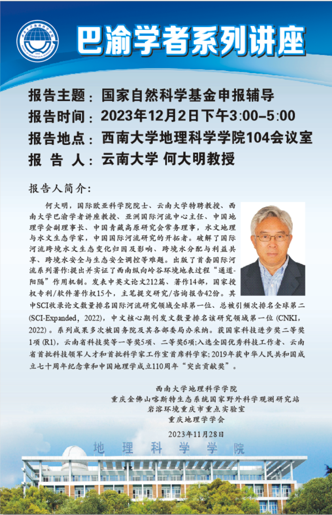 巴渝学者系列讲座--国家自然科学基金申报辅导