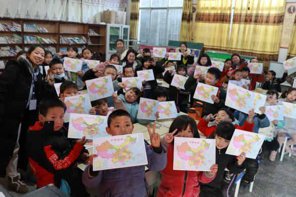 1月12日上午,泉孔小学志愿服务队一行抵达泉孔小学,受到全校师生热情欢迎。志愿服务队首先代表tyc122cc太阳成集团向泉孔小学赠送了文体用品等物资,随后在校方的引领下参观了校园。根据与校方共同制订的教学方案,此次的授课以地图拼图课、手工课、垃圾分类课为主,辅以音乐课、户外体育课等课程。正式上课之前,队员们除了认真准备课件、讨论授课细节、模拟课堂训练、检查多媒体设备以外,还利用课间休息时间和孩子们开展了破冰活动,拉近与孩子们的距离、增进彼此了解,为课堂授课做足了准备。
