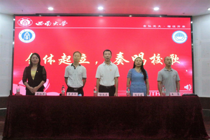 见面会最后一项议程全体领导、老师和同学共同起立,奏唱校歌,在动听的歌声中结束此次新生见面会。