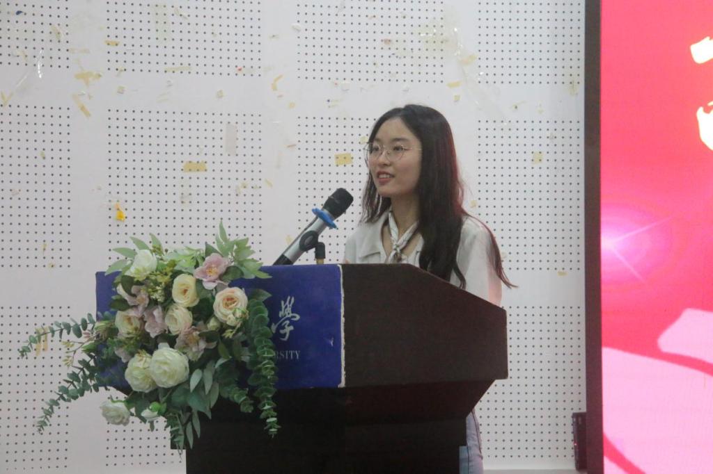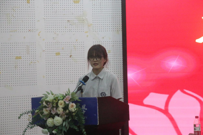 接着是新生代表2021级地理科学师范2班张宸歌的发言。她首先表达了对每位家长与老师的感谢与付出,接着讲述西大榜样带来的力量,对未来的老员工活表达自己的期许与目标,也号召每位同学团结互助、勇攀高峰。