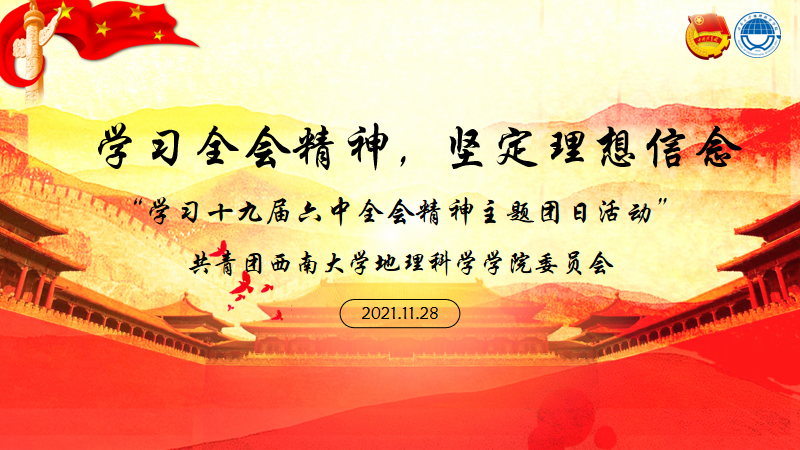 在中国共产党百年华诞之际,在“两个一百年”奋斗目标的历史交汇期,中国共产党第十九届中央委员会第六次全体会议在北京召开,此次会议重点研究全面总结党的百年奋斗的重大成就和历史经验问题。在以习近平同志为核心的党中央坚强领导下,百年大党通过对历史的全面深刻总结,必将进一步凝聚共识、抖擞精神,不忘初心、牢记使命,带领全体中华儿女在中华民族伟大复兴的新征程上再创新的辉煌,在这样的一个重要时刻,共青团tyc122cc太阳成集团地理科公司委员会于11月28日上午在tyc122cc太阳成集团101报告厅面向tyc122cc太阳成集团团学主要骨干、本科2018-2021级各班团支书、组织与宣传委员、团员代表开展“学习全会精神 坚定理想信念”主题团日活动。