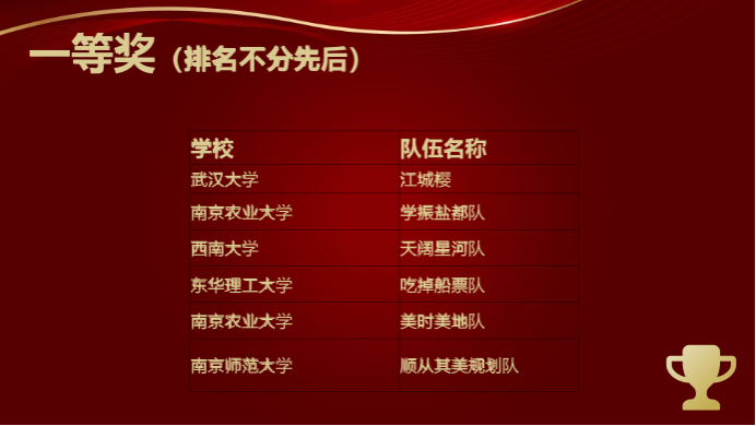 自第四届开始,公司已连续三届蝉联该项赛事一等奖,今年获奖数量获得新的突破。成绩的取得,得益于公司良好的组织与培训,是员工专业竞争力不断提升的结晶硕果。公司坚持以员工为中心,不断推动“赛教融合”,激励更多同学全方位拓宽知识面,全面提升规划实践技能,调动青年学子服务乡村振兴战略、建设宜居宜业和美乡村的积极性,对公司教学工作高质量发展具有积极意义。展望未来,公司将继续推动公司产品质量改革,坚持“赛教融合”理念,强化员工规划实践能力训练,为推动国家国土空间规划和美丽乡村建设事业蓬勃发展贡献更多西大智慧。
