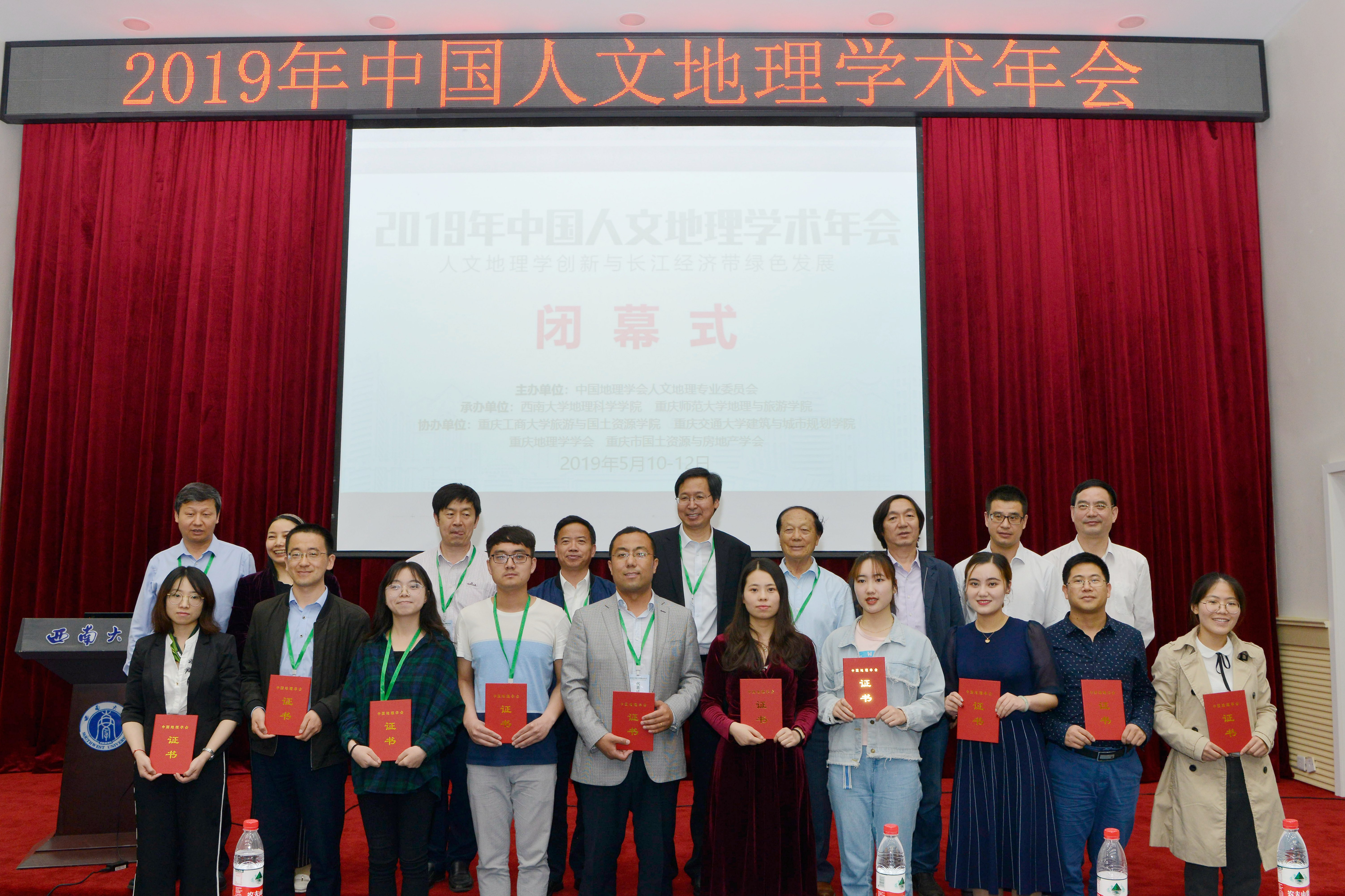 5月10-12日,2019年中国人文地理学术年会在重庆·tyc122cc太阳成集团举行。本次会议由中国地理学会人文地理专业委员会主办,tyc122cc太阳成集团、重庆师范大学地理与旅游公司承办,重庆工商大学旅游与国土资源公司、重庆交通大学建筑与城市规划公司、重庆地理学学会、重庆市国土资源和房地产学会协办。来自北京大学、清华大学、中山大学、浙江大学、tyc122cc太阳成集团地理科学与资源研究所、中国城市规划设计研究院等120余所高校、科研院所的600余名专家学者围绕“人文地理学创新与长江经济带绿色发展”的大会主题开展了一系列学术报告、学术对话、开放性论坛、工作会议、学术实践等活动。