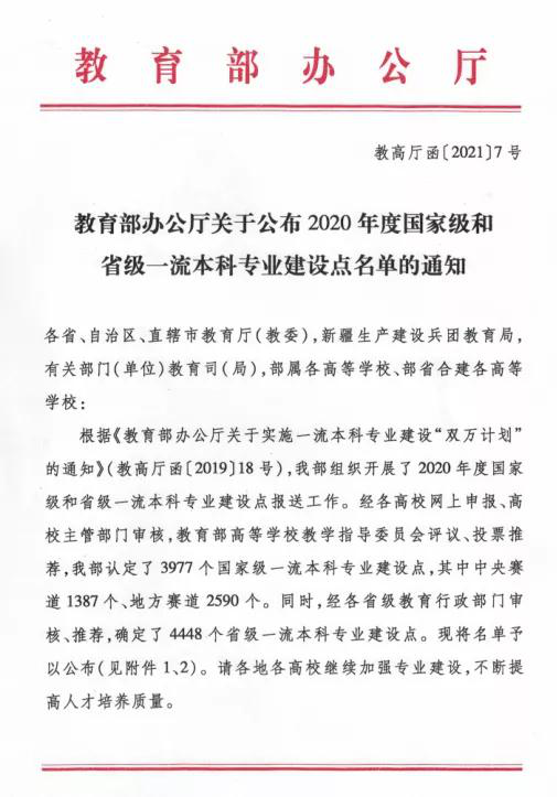 近日,教育部发布《教育部办公厅关于公布2020年国家级和省级一流本科专业建设点名单的通知》(教高厅函[2021]7号),tyc122cc太阳成集团地理科学专业入选国家级一流本科专业建设点,实现了公司国家级一流本科专业零的突破。