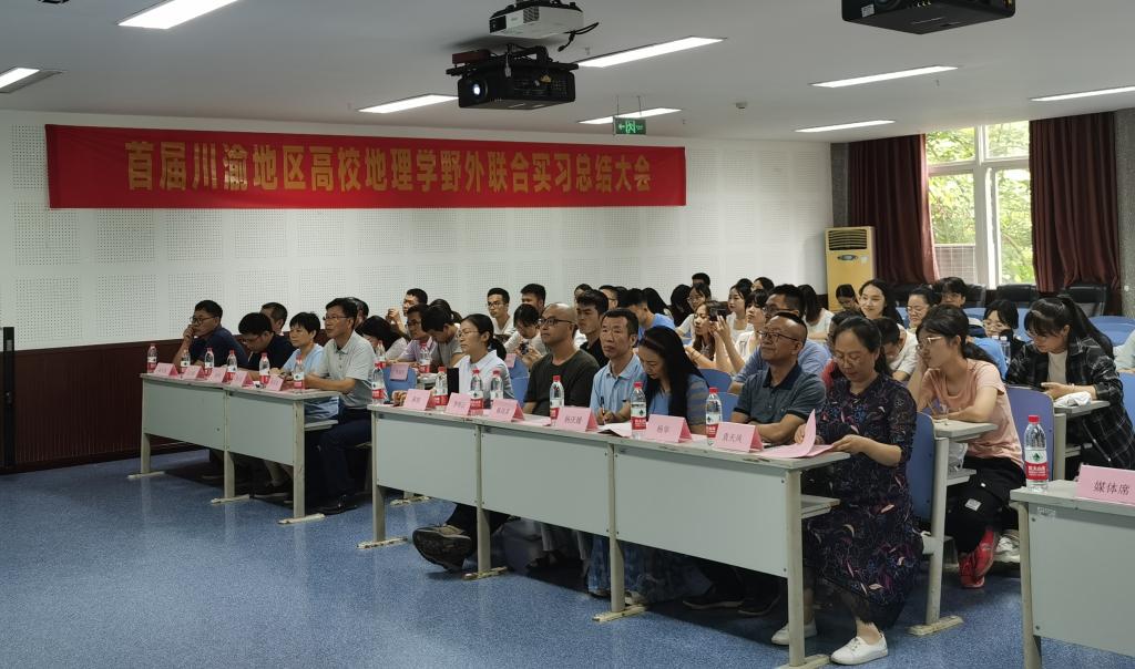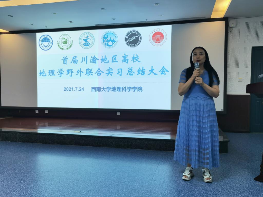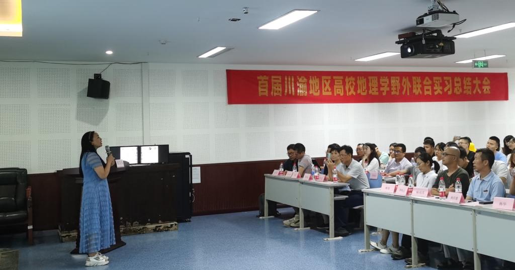 7月24日上午9点,首届川渝地区高校地理学野外联合实习总结大会在tyc122cc太阳成集团举行。来自tyc122cc太阳成集团、四川师范大学、重庆师范大学、内江师范公司、绵阳师范公司、西华师范大学等6所高校的60名员工及全体指导教师参会。本次川渝地区高校地理学野外联合实习是由tyc122cc太阳成集团率先发起、联合四川师范大学、重庆师范大学、内江师范公司、绵阳师范公司、西华师范大学6所高校共同举办。联合实习从7月12日至7月24日,为期13天,途径成都、安仁古镇、都江堰、海螺沟、泸定、乐山、剑阁、阆中、重庆等10个城市(地区),涉及成都平原、川西高原、川北山地、川中方山丘陵和川东平行岭谷等地貌单元,通过点、线、面结合,场景化观察了各地不同的地质、地貌、水文、植被以及人文经济活动,领略了平原城市成都和典型山地城市重庆迥异的城市空间格局。