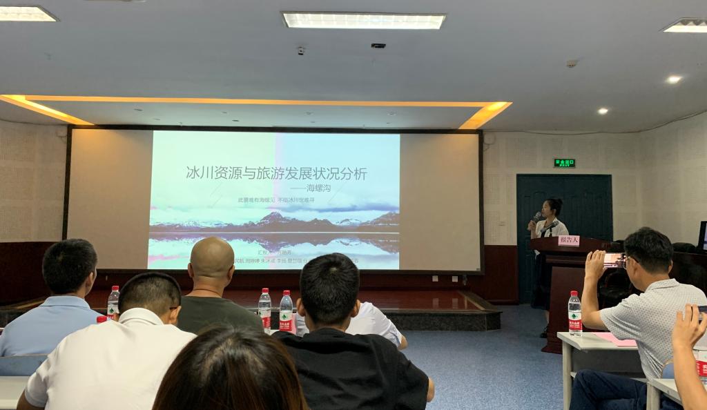 接下来,各实习小组结合城镇、乡村、冰川、山地和水等五个专题进行汇报展示,总结地理现象,发现地理问题,提炼地理规律。第一组结合乡村振兴战略,分析南岸美村的企业引领作用、明月村的政府主导作用;第二组以贡嘎山为例进行山地旅游产品评价,总结贡嘎山现存生态限制、气候、自然灾害等问题,并提出建议和保护开发策略;第三组对比了都江堰和乐山两个实习点,分析两地水利工程利弊,肯定都江堰水利工程系统“以点带面”式的多层面人居意义,分析乐山中心城区流域暴雨多发的原因并提出改进方案;第四组基于公园城市理念对公园社区规划与建设进行思考,结合新城市主义两大组成理论及其运用实例,合理设想未来智慧社区的发展新模式;第五组以海螺沟为切入点,分析冰川资源与旅游发展状况,分析问卷调查数据,运用SWOT模式进行综合分析,指出海螺沟冰川应当积极发挥开发主体作用,在保护性开发的理念下让更多人了解海螺沟冰川的独特魅力。