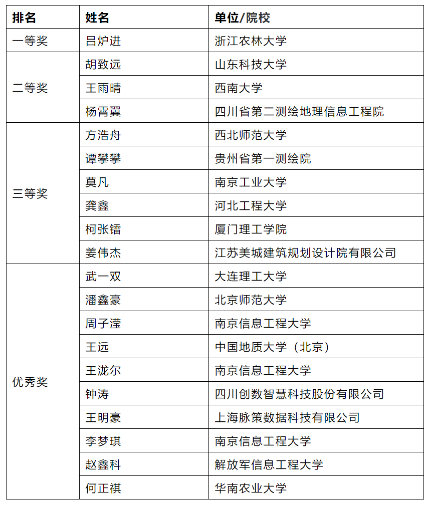 由中国信息协会与易智瑞信息技术有限公司、中科地信(北京)遥感信息技术联合举办的“2021年地理信息技术与应用技能大赛”决赛于2021年10月16日成功举行。tyc122cc太阳成集团的王雨晴同学最终综合排名第3,荣获二等奖,田永中老师荣获优秀指导老师。