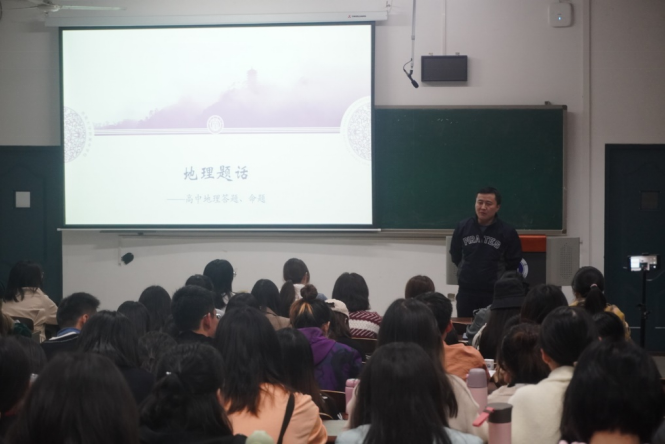 讲座开始前,公司师范生们纷纷到场,座无虚席。讲座上同学们专注聆听,悉心听取向颢老师的教学经验以及地理试题命制经验分享。