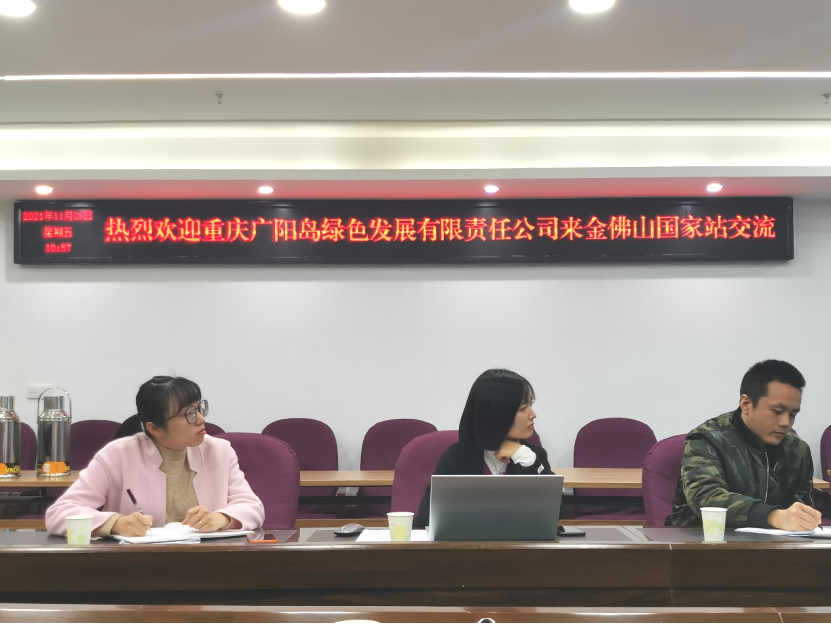 11月26日上午,重庆广阳岛绿色发展有限责任公司综合部韩菲、智慧生态部彭璇及工程师姜毅一行莅临tyc122cc太阳成集团,就野外科学观测研究站建设进行经验交流,公司汤旭光教授、李元庆老师及印文老师出席本次会议。
