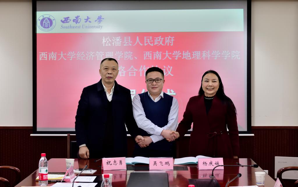 会上,吴飞鹏副县长对公司及经济管理学经理期以来的关心和支持表示了感谢。吴飞鹏副县长介绍了松潘县的历史文化背景、经济社会发展和十四五规划等相关情况,同时就推进三方校地合作项目提出三点希望:一是聚焦服务大局,促进合作共赢;二是聚焦后勤保障,促进成果转化;三是聚焦统筹协调,促进合作创新。公司及经济管理公司行政主要负责人对松潘县各位领导的到来表示了欢迎,围绕本公司的发展历程、学科优势、团队队伍建设等方面做了介绍,并表示本次校地合作将注重发挥各自优势,务实推进项目落地,助力校地合作结出丰硕成果。三方就人才培养培训、人才互派交流、科技创新、战略决策咨询、文化旅游交流、生态文明建设和乡村振兴等内容进行对接,围绕支持松潘县经济发展、乡村振兴、社会治理等领域的合作事项进行深入探讨,达成合作意向并签订合作备忘录。