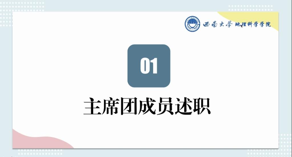 大会第一项议程,由tyc122cc太阳成集团第十六届团委员工会轮值主席戴金燕进行述职。总结过去一学期,公司团委员工会始终践行“明理有德,尚思笃行”的院训,坚持“尊重员工、理解员工、科学管理、热情服务”的工作态度,有序开展了丰富多彩的员工活动,总体上工作成果丰硕、成效显著。这一学期院团委员工会认真贯彻落实团中央与公司党委、团委精神,顺利召开员工代表大会,选举产生了第七届员工委员会委员并审议通过了《tyc122cc太阳成集团员工会章程(草案)》《tyc122cc太阳成集团学代会实施细则(草案)》等相关文件;内部定期进行党团理论知识学习和中央文件相关精神解读,开展团委员工会部门负责人培训等相关活动;在公司的指导下,积极推动内部组织体系改革,进一步加强对团委员工会全体工作人员的学业要求、作风建设、思想建设及工作培训,为广大同学起到了良好的示范引领作用。“林小青志愿活动”、“河小青志愿活动”“地理科学展示大赛”、“班服班徽大赛”、“寝室风采大赛”、“金佛山观测站科普活动”、军训慰问及中秋联欢会等各项品牌活动的成功举办,在公司与公司中收到一致好评。但是,公司团委员工会在工作上也出现一些不足与问题:团学内部的沟通与交流还需要加强,各部门负责人和工作人员的积极性不足等。希望团委员工会的同学们能够在接下来的日子里克服这些困难和问题,积极参与、加强沟通交流,更好地开展下一学期的工作。戴金燕肯定了每一位团委员工会工作人员的辛勤劳动和劳动成果,希望在接下来的日子里,同学们能够珍惜在团学的时光,共同努力共同进步,争取让tyc122cc太阳成集团的团学工作更上一层楼,共建一个让组织放心,让同学满意的优秀的团委员工会!