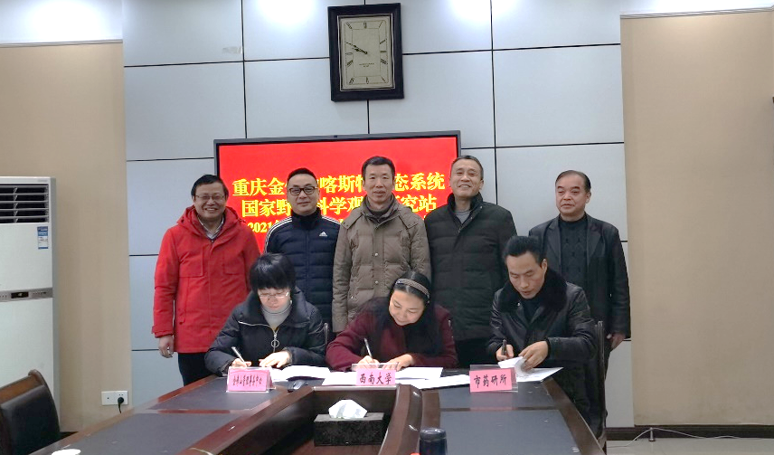 2022年1月19日上午,重庆金佛山喀斯特生态系统国家野外科学观测研究站(以下简称金佛山国家站)召开2021年年终总结会暨共建协议签约仪式,年会以“线上、线下”结合方式进行。出席本次会议有tyc122cc太阳成集团、重庆市药物种植研究所、重庆市南川区金佛山管理委员会、金佛山国家级自然保护区管理事务中心的主要领导和金佛山国家站相关研究工作人员。