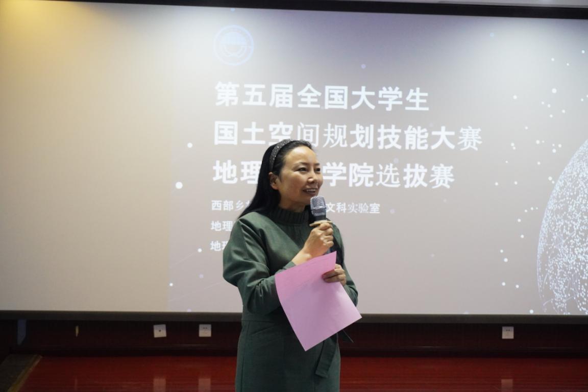杨庆媛副经理为本次选拔赛致辞。她首先向重庆市北碚区规划和自然资源局对本次比赛的支持以及筹备选拔赛的老师和同学表达了衷心感谢,也对参加选拔赛的同学们表示了诚挚祝愿。杨经理表示,本届全国老员工国土空间规划技能大赛以“优化空间格局,完善空间治理”为主题,可以鼓励同学们学技能、练技能、比技能、用技能,对提高编制国土空间规划等规划技能水平、增强专业竞争力、把书本知识转化为实际行动,具有重要意义。回顾去年大赛,公司学子取得了一等奖的好成绩;今年公司高度重视,早谋划、早安排、早部署,希望通过本次比赛,能够提高大家对专业技能的认识和参与热情。