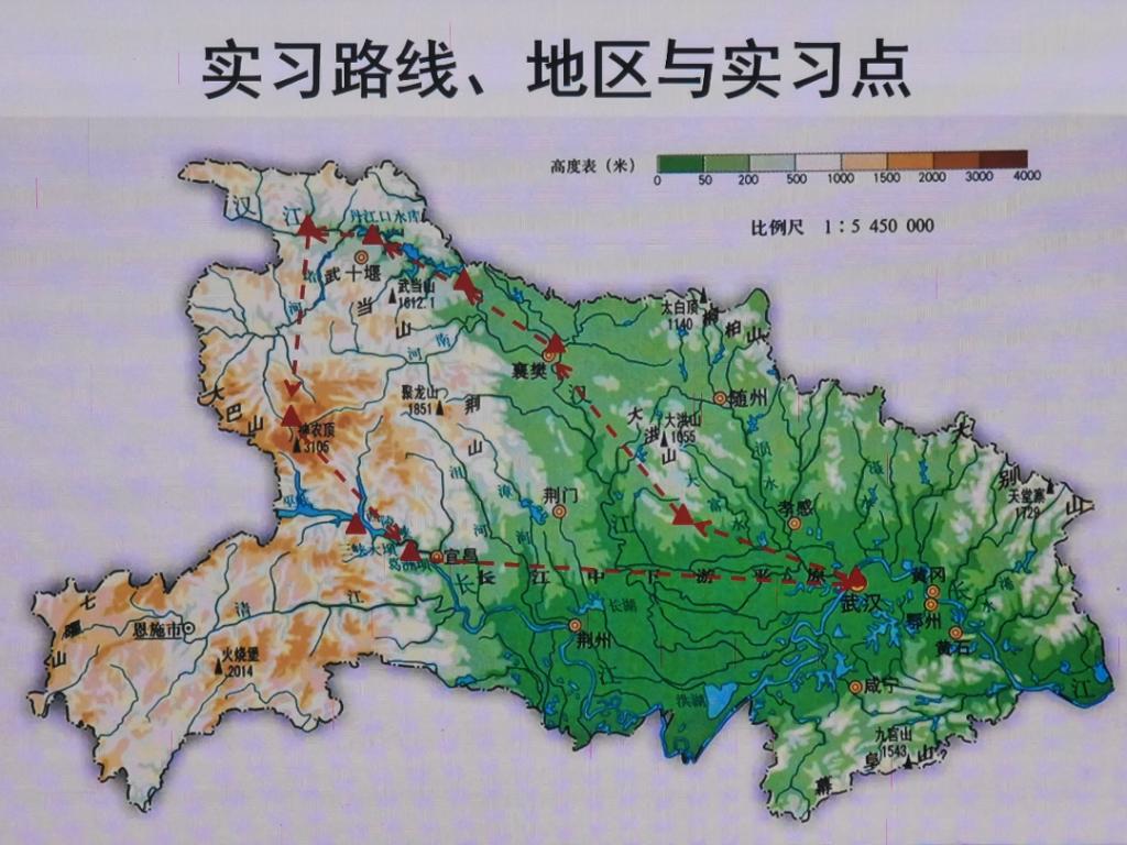 (2)丹江口-郧阳区:汉江河流地貌、地层与古生物(恐龙蛋地质公园)、城市规划(丹江口市)、新农村建设、区域水资源配置与水资源保护(丹江口水库)等;