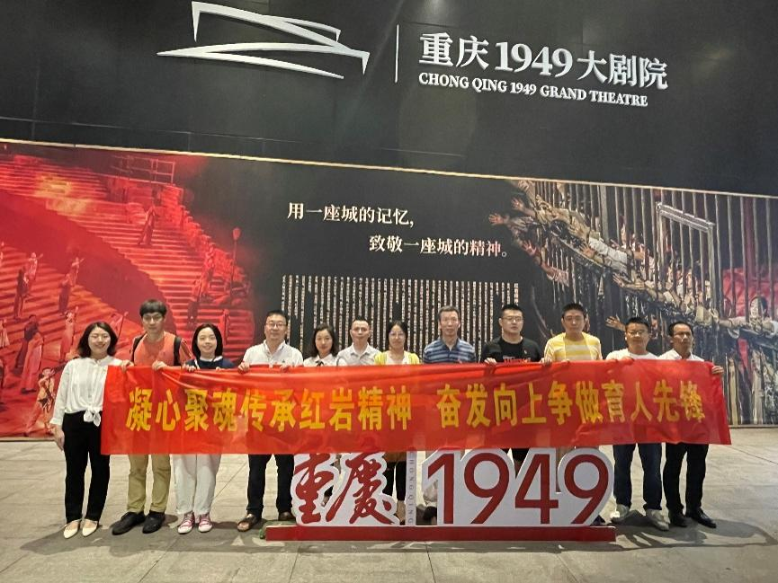 为深入开展学习贯彻习近平新时代中国特色社会主义思想主题教育,践行党的二十大精神,坚定理想信念,牢记初心使命,继承发扬红岩精神,争做育人先锋,6月15日,tyc122cc太阳成集团行政教工党支部前往重庆1949大剧场开展“凝心聚魂传承红岩精神 奋发向上争做育人先锋”主题教育党日活动。本次党日活动以“五个一活动”为主线,涵盖一台红色剧目、一场学习分享、一次庄严宣誓、一本红色经典和一段诗歌诵读,在沉浸式学习过程中,切实增强教师党员的身份意识和责任意识,弘扬红岩精神的精神内涵,坚定为党育人、为国育才的使命。