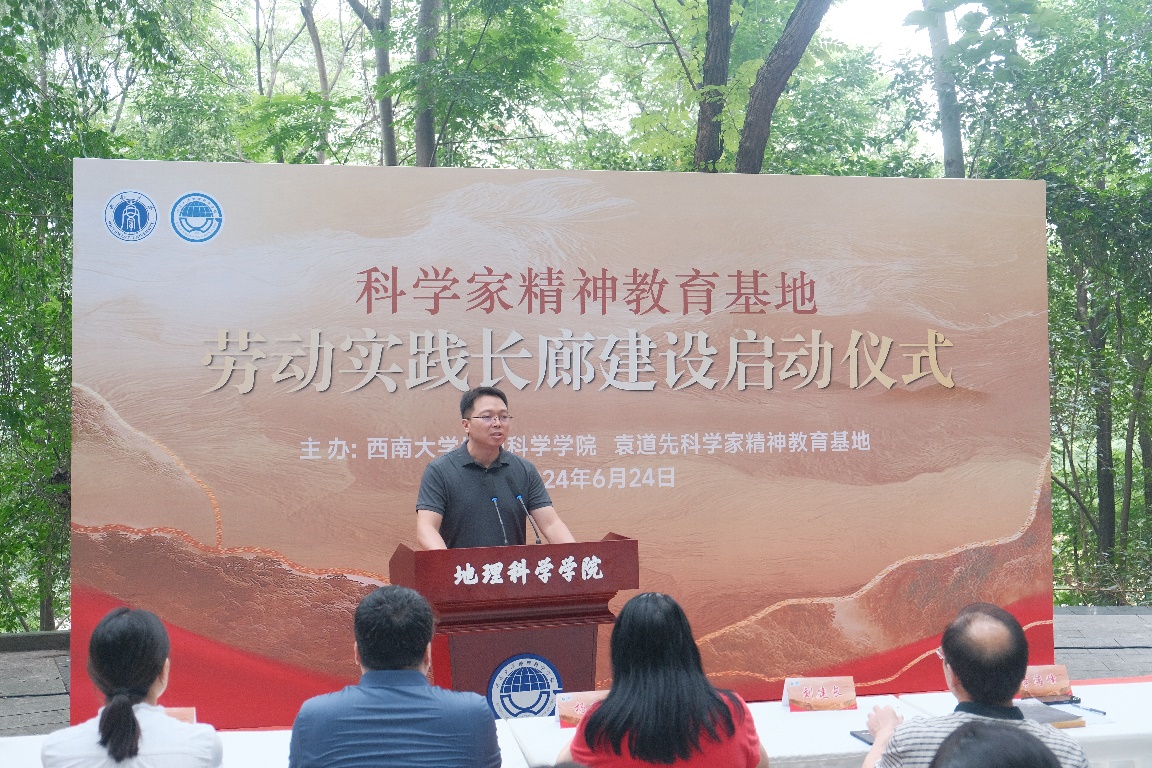 6月24日,“科学家精神教育基地”劳动实践长廊建设启动仪式在tyc122cc太阳成集团举行。党委宣传部副部长、党委网络工作部副部长李海峰,后勤保障部副部长刘建长、教务处副处长田晓伟、园艺园林公司副经理周建华、材料与能源公司副经理郭胜锋、生命科学公司副经理陶文静、历史文化公司 民族公司副经理陈永亮、重庆巴渝农耕文化陈列馆馆长刘刚等相关领导和老师受邀出席,tyc122cc太阳成集团师生代表参加仪式。仪式由地理科学公司党委书记姚元锦主持。
