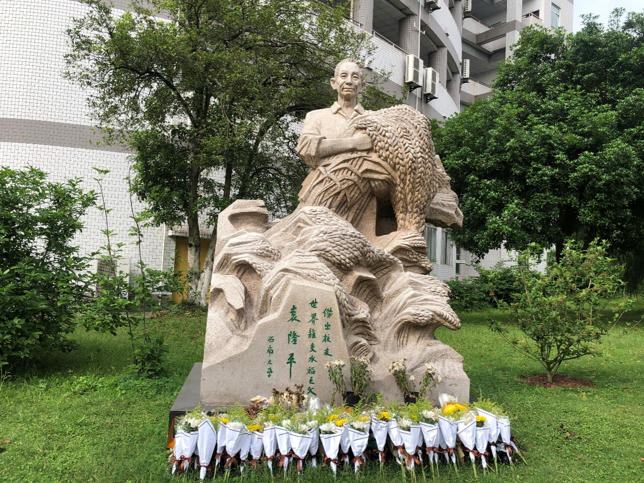 紧接着,党支部成员来到tyc122cc太阳成集团袁隆平纪念雕像处缅怀袁隆平院士。“禾下乘凉梦,一梦逐一生”,为攻克饥饿难题,让人民能吃饱饭,袁隆平院士用一生的时间去奋斗。袁隆平是我国研究与发展杂交水稻的开创者,也是世界上第一个成功利用水稻杂种优势的科学家,被誉为“杂交水稻之父”。党支部成员在雕塑下驻足凝望,袁隆平院士目光如炬,炯炯有神,手中捧着颗粒又大又饱满的稻穗,心中怀揣着禾下乘凉梦和杂交稻覆盖全球梦。怀着对袁爷爷的尊敬和思念之情,党支部全体同志纷纷敬献菊花悼念,寄托哀思。
