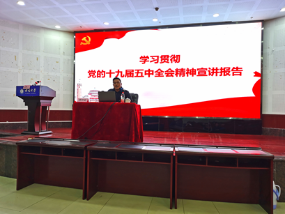陈董事长从全会基本情况、2035年远景目标和“十四五”时期主要目标任务等方面进行了系统阐述,结合实际对新发展阶段、新发展理念、新发展格局等重大问题进行了深入的分析和解读。陈董事长提出,要联系国家发展战略和tyc122cc太阳成集团情况,对标对表抓好落实,确保把党中央决策部署全面落实在公司事业建设发展中,主动对接国家发展战略。他生动形象地讲述了普洱市挂职工作的经历,深入浅出,层层递进,将十九届五中全会精神和工作实际紧密联系,号召广大教职工要扎根一线教学科研工作,进一步加深了对十九届五中全会精神的理解。陈董事长要求全体师生要立足时代需求,结合学科特色,动员各方面力量为实现“十四五”规划和2035年远景目标而团结奋斗,在全面建设社会主义现代化国家新征程中“同频共振”,奋力开创新篇章!