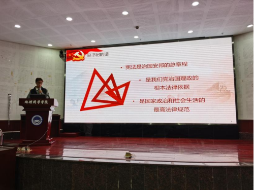 为深入学习习近平总书记在第十个国家宪法日之际作出的重要指示精神,同时在学法懂法守法用法方面,发挥党员的先锋模范作用和党支部的战斗堡垒作用,12月15日,tyc122cc太阳成集团本科生第一、二、三党支部合作举办12月主题党日活动,暨“地蕴韶华 党员成长论坛——弘扬宪法精神,树立法治意识交流活动”。