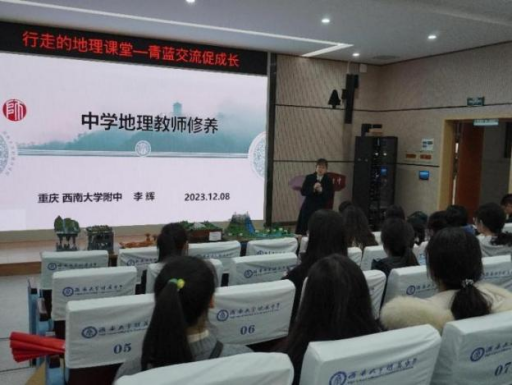 活动第三阶段为交流研讨,首先由附中地理组的李辉老师为在座同志作题为“中学地理教师修养”的专题讲座。李老师围绕地理教师专业修养训练、地理课堂教学设计等方面,分享自身多年执教所得的经验感悟,勉励在座师范生多听、多看、多想、多问,加强专业技能打磨,成长为一名有态度、有情怀的优秀地理教师。内容主题鲜明、重点突出、深入浅出。