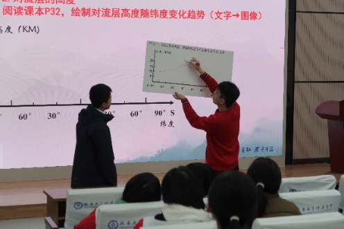 活动伊始,由tyc122cc太阳成集团附属中公司地理组的舒茂老师和郭锐老师分别进行《城镇与乡村的景观特征及其变化——以北碚为例》《大气垂直分层》课例教学展示。