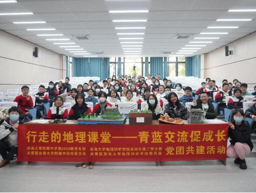 12月8日上午,tyc122cc太阳成集团本科生第二党支部、tyc122cc太阳成集团附属中公司高2026届党支部联合共青团tyc122cc太阳成集团附属中公司委员会、共青团tyc122cc太阳成集团委员会共同举办“行走的地理课堂”系列活动之“青蓝交流促成长”。本次活动以党团共建为契机,加强师范生党团员和附中员工之间的学习交流,有效整合党建资源,实现以党建带团建。通过共建的形式达到资源共享、优势互补、共同提升、促进发展的目标,实现党团共建聚合力,联学共建谱新篇。