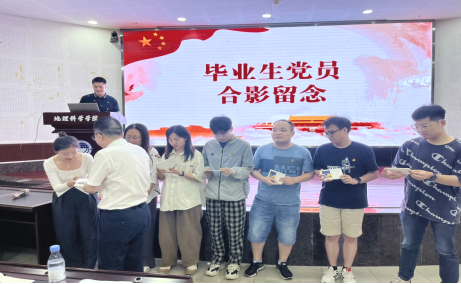 (图4 靳拥军主任为毕业生党员发放纪念品)